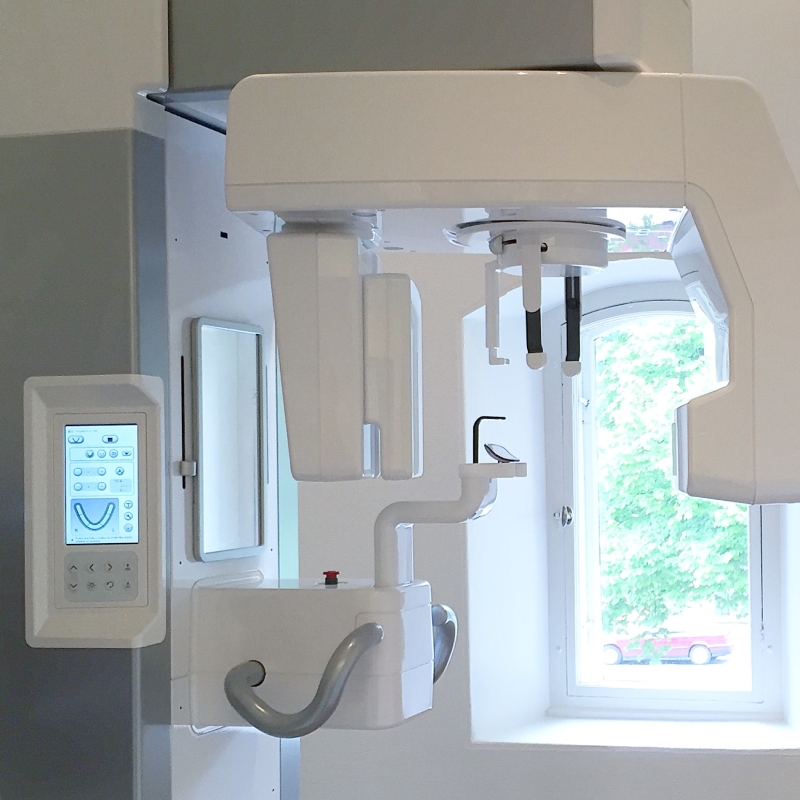 Ända sedan 2013 har vi på Kungskliniken i Varberg kunnat erbjuda dig som patient den mest avancerade tekniken inom dental röntgen som finns. Vi har en så kallad volymtomograf, en röntgenmaskin som tar 3-dimensionella röntgenbilder (CBCT – står för cone beam computer tomography). Tekniken har en rad fördelar. Den avbildar önskat område i käkarna i 3D vilket innebär att man kan ställa en mycket noggrann diagnos och planera väl inför ett kirurgiskt ingrepp. Allt sker helt digitalt vilket innebär att stråldosen är betydligt lägre än vid traditionell röntgen.